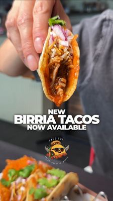 cheese crusted corn tortilla, beef brisket, nachos cheese, onion,coriander, serve with birria consume *NOTE* Takeaway occurs a $1 for the Taco Box specially designed to hold the tacos in place! We would recommend to eat them fresh in store instead!
