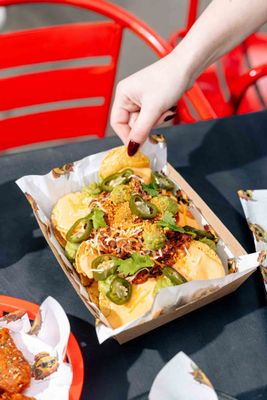 Nachos Cheese, Jalapeno, Avocado, on your choice of Corn Chips, Waffle Fries or Shoestring.