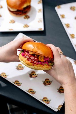 Smoked Brisket, Mayo, Onion, Pickled Coleslaw, Parmesan Crumble, Coriander