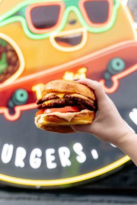 Double Smashed Patties, American Cheese, House Sauce, Lettuce, Tomato, Onion